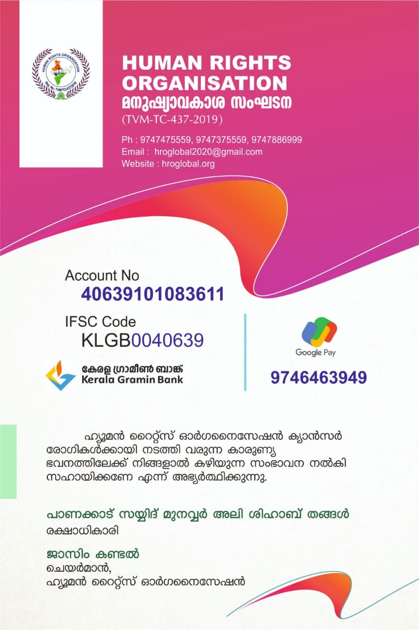 മനുഷ്യാവകാശം സംരക്ഷിക്കുവാനും ഹ്യൂമൻ റൈറ്റ്സ് ഓർഗനൈസേഷൻ എന്നും നിങ്ങളോടപ്പം ഉണ്ടാകുമെന്നു ഉറപ്പ് നൽകുന്നു.